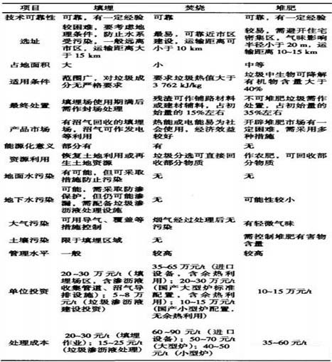 生活垃圾的(de)處(chu)理主(zhu)要有衛生填埋、堆肥(fei)、焚燒3種處(chu)理方法,其(qi)優缺點(dian)見表2。