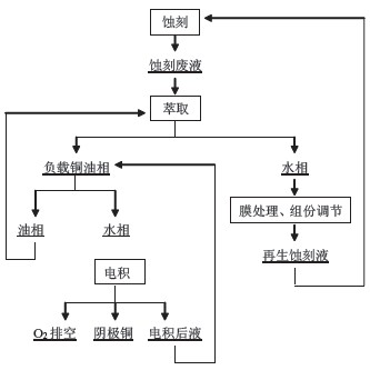 印制(zhi)線路板蝕(shi)刻(ke)(ke)廢液(ye)(ye)在線循環(huan)技(ji)(ji)術的核心是蝕(shi)刻(ke)(ke)廢 液(ye)(ye)循環(huan)再生(sheng)裝置,主要包括的關鍵技(ji)(ji)術有:1)隔膜萃(cui)取 分離(li)技(ji)(ji)術/銅資源化技(ji)(ji)術;2)蝕(shi)刻(ke)(ke)液(ye)(ye)組份調節技(ji)(ji)術;3) 蝕(shi)刻(ke)(ke)廢液(ye)(ye)循環(huan)再生(sheng)技(ji)(ji)術;4)設備一體化技(ji)(ji)術。