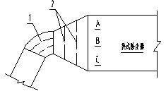 圖3 某電廠袋式除塵器導流板和氣流分布板示意圖(1.進口彎煙道內導流板 2.進口喇叭口內氣流分布板)
