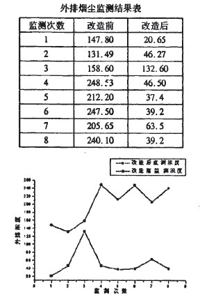 電(dian)除(chu)(chu)塵(chen)(chen)器(qi)經過以上改造和運行、操作的調整(zheng)后(hou),漏風、堵(du)灰、極板積(ji)灰等現象得到了(le)顯著改善(shan),電(dian)流、電(dian)壓運行也趨于正常,除(chu)(chu)塵(chen)(chen)效率得到了(le)顯著提高。改造前(qian)后(hou)。絡(luo)塵(chen)(chen)器(qi)外(wai)排濃度監測結(jie)果(guo)變化情況如下表。