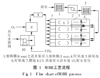 隨著世(shi)界水(shui)(shui)(shui)(shui)(shui)(shui)資源的(de)不(bu)斷消耗, 水(shui)(shui)(shui)(shui)(shui)(shui)問(wen)題已經成為全球性問(wen)題, 為了(le)實現水(shui)(shui)(shui)(shui)(shui)(shui)資源的(de)可(ke)持續利用, 污(wu)水(shui)(shui)(shui)(shui)(shui)(shui)處(chu)理后回(hui)(hui)用已經是一(yi)(yi)個不(bu)可(ke)回(hui)(hui)避的(de)事實。膜生(sheng)物反應(ying)器(MBR ) 是一(yi)(yi)種(zhong)由膜分離(li)單元與生(sheng)物處(chu)理單元相結合的(de)新型水(shui)(shui)(shui)(shui)(shui)(shui)處(chu)理技術, 因其出水(shui)(shui)(shui)(shui)(shui)(shui)水(shui)(shui)(shui)(shui)(shui)(shui)質能達到(dao)生(sheng)活雜用水(shui)(shui)(shui)(shui)(shui)(shui)水(shui)(shui)(shui)(shui)(shui)(shui)質標(biao)準, 可(ke)滿(man)足一(yi)(yi)般的(de)中水(shui)(shui)(shui)(shui)(shui)(shui)回(hui)(hui)用要求(qiu), 且(qie)該工(gong)藝占(zhan)地面(mian)積小、運(yun)行(xing)穩定、管理方便、污(wu)泥(ni)產量(liang)少, 使其在中水(shui)(shui)(shui)(shui)(shui)(shui)回(hui)(hui)用領域的(de)應(ying)用日益廣泛[ 1、2] 。