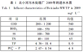 2009年北(bei)小(xiao)河污水(shui)處理廠全年的進水(shui)水(shui)質情況見表1。