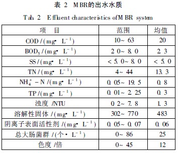 2009年(nian)MBR 處理(li)系(xi)統(tong)的出水(shui)水(shui)質見表(biao)2。