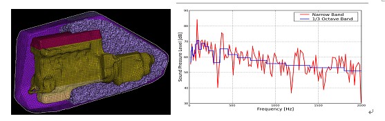 (1)高效率的聲輻射和聲傳播模擬軟件ACTRAN Acoustics,包含了許多排他性聲學模擬能力,既可以模擬簡單的部件,也可以模擬復雜的系統,具有模擬振動結構聲輻射、進氣和排氣噪聲、噪聲傳播特性和吸收、在非均質、具有溫度梯度等復雜流體介質中的聲傳播等功能。
