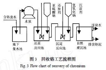 對比三種回收方法的優缺點,用亞硫酸鈉為還原劑,以三氧化二鉻的形式回收鉻簡單易行最合適,其簡單示意工藝流程如圖3 。