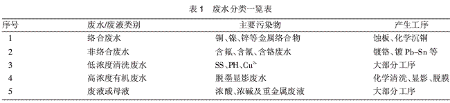 綜合分析電鍍企業廢水、廢液的水質及排放情況,電鍍廢水處理一般按同類合并、分類收集、分別處理的思路進行,分類明細見表1。