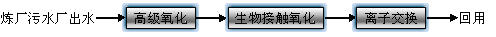 首先進行有機質深度處理,然后采用去離子化措施,兩項技術的優化組合實現去除礦化度的目的,處理后的水可回用作冷卻水。