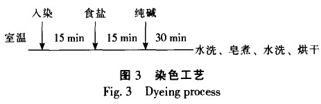棉織物坯布100 g,對其進行退、煮、漂一浴處理.棉織物坯布處理配方和工藝條件:氫氧化鈉8 g/L,30% 過氧化氫5 g/L,硅酸鈉3 g/L,JFC 2 L,OS一100 2 g/L,浴比1:30,時I司60min。
