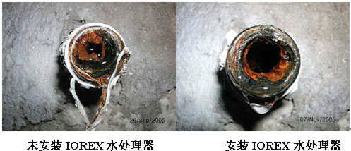 安裝IOREX水處理器后可以阻止和去除管道內壁的銹和垢,延長管道壽命,節省因管道老化、損壞的費用!減少了不必要的損失!