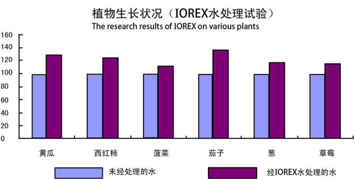 IOREX已通過《國家飲用水標準》檢測,符合CMA、CNAS標準,通過的水可以直接飲用經過IOREX處理過的水,水分子結合電離細微分解時,連接在一起的水分子被切割,水由大團”分解成“小團”容易吸收,通過植物毛細根吸收得又快又好、溶解在水中的肥料成分、營養成分也同時被吸收,使水與營養成分的吸收被活躍,從而促進植物生長。
