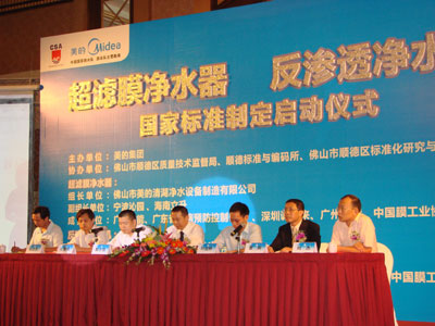 7月10日下午,美的清湖凈水設備制造有限公司作為組長單位牽頭編寫《反滲透凈水機》和《超濾膜凈水器》國家標準的啟動會議在順德萬怡酒店正式召開。這標志著中國水家電產業發展跨越了里程碑式的一步。