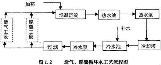 目前國(guo)內普遍采用的造氣、脫硫循環水系統(tong)工藝流程(cheng)見圖(tu)1.2。