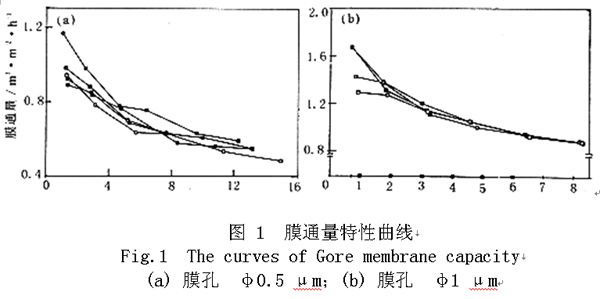 由(you)圖1可(ke)(ke)見(jian),0.5 μm和(he)1 μm的(de)戈(ge)爾薄(bo)(bo)膜(mo)濾(lv)料(liao)在前5 min的(de)平均膜(mo)通量(liang)分別為0.8 m3/(m2*h)和(he)1.2 m3/(m2*h),以后膜(mo)通量(liang)減小,曲線趨(qu)于平緩(huan),但(dan)每次反吹脫(tuo)泥餅后仍可(ke)(ke)恢(hui)復(fu)良好膜(mo)通量(liang)特(te)性(xing),這(zhe)是因為該濾(lv)料(liao)采用戈(ge)爾專有的(de)膨體聚四氟乙烯薄(bo)(bo)膜(mo)制造技術制成(cheng)的(de)。具有表(biao)面(mian)摩(mo)擦因數低(di),單(dan)位膜(mo)面(mian)積成(cheng)孔(kong)率高等特(te)性(xing),能始終保持較(jiao)低(di)過濾(lv)阻力和(he)較(jiao)高膜(mo)通量(liang)。因此,用戈(ge)爾薄(bo)(bo)膜(mo)濾(lv)料(liao)處理含氟廢水(shui),膜(mo)孔(kong)選用0.5 μm,設計單(dan)位處理量(liang)0.8 m3/(m2*h),過濾(lv)壓(ya)力0.08~0.10 MPa,過濾(lv)周期每5 min設定反吹一(yi)次。