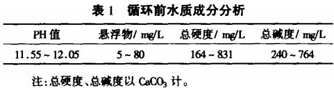 除塵器的一文、二文采用并聯供水,一文、二文重力脫水器、濕旋脫水器及水封等產生約700m3/h廢水進入轉爐除塵水凈化系統處理,該系統在1989年、1994年曾兩次改造,都因水質硬度高、堿度高(表1)結垢嚴重無法循環利用,只是實現了懸浮物達標排放,尤其是在1989年試循環時,因結垢問題運行幾天后就停止。在經過一系列攻關試驗后,該系統在1999年第三次改造后實現了閉路循環。