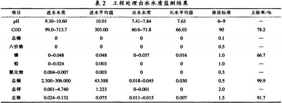 由表2可見,線路板廠廢水經過處理后,出水各由表2可見,線路板廠廢水經過處理后,出水各項指標均達到廣東省《水污染物排放限值》(DB44/26-2001)第二時段一級排放標準。