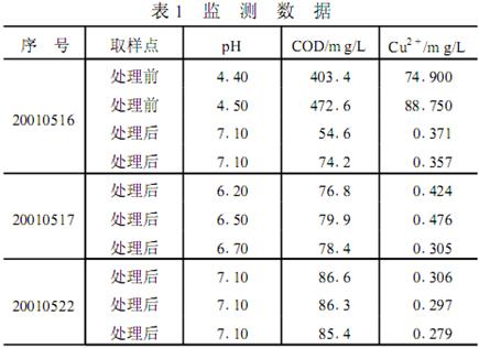 該廢水處理(li)工(gong)程(cheng)已于2000年(nian)12月投入(ru)運(yun)行,處理(li)效果良(liang)好,2001年(nian)6月通過環保驗收。監測(ce)數據(ju)見表(biao)1。