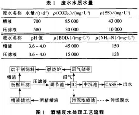 河(he)南(nan)某酒精廠以玉米為(wei)原料(liao)生(sheng)產酒精,生(sheng)產能力為(wei)2萬t/a,生(sheng)產過程(cheng)中排放(fang)的廢水主要(yao)來源于酒精蒸餾后剩(sheng)余的糟液(ye)(ye),生(sheng)產每噸酒精排放(fang)糟液(ye)(ye)約12t,每天(tian)排放(fang)量(liang)為(wei)700t,其主要(yao)成分(fen)是未充分(fen)發酵的糧食顆粒、殘糖、發酵微生(sheng)物的懸浮(fu)物和(he)膠狀(zhuang)液(ye)(ye)體。廢水水質水量(liang)見表1。