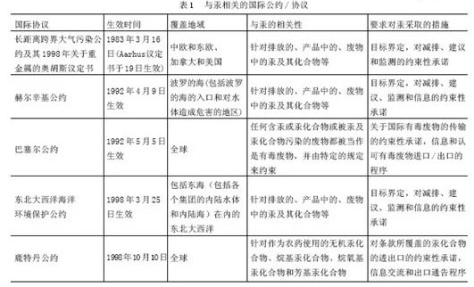 通(tong)過(guo)國(guo)際(ji)和(he)區(qu)域間合(he)作(zuo)(zuo)控(kong)(kong)制(zhi)汞污(wu)染汞控(kong)(kong)制(zhi)的(de)(de)國(guo)際(ji)和(he)區(qu)域環(huan)境協議(yi)的(de)(de)制(zhi)定(ding)和(he)實施(shi)目前已經有很多國(guo)家(jia)加入(ru)了(le)涉及汞污(wu)染防治的(de)(de)國(guo)際(ji)公約(yue)和(he)地區(qu)行動,并從國(guo)際(ji)合(he)作(zuo)(zuo)中獲益(yi)。汞污(wu)染控(kong)(kong)制(zhi)體系縱向上逐漸(jian)形成了(le)局地—區(qu)域—全球三個層(ceng)面共同協作(zuo)(zuo)的(de)(de)格局。表1 總結(jie)了(le)與汞控(kong)(kong)制(zhi)相(xiang)關的(de)(de)國(guo)際(ji)公約(yue)或(huo)協議(yi),目前國(guo)際(ji)或(huo)區(qu)域間主要在汞的(de)(de)減排(pai)、控(kong)(kong)制(zhi)措施(shi)選擇(ze)、汞的(de)(de)監測(ce)和(he)相(xiang)關信(xin)息的(de)(de)交流(liu)等(deng)領域進行溝通(tong)和(he)合(he)作(zuo)(zuo)。