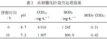 廢(fei)水(shui)(shui)經水(shui)(shui)解酸化處理后各項水(shui)(shui)質(zhi)指標的(de)變化情況見表2。