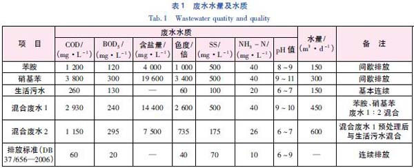 廠區內(nei)有(you)150m3/d生活污水(shui)(shui)(shui),綜合水(shui)(shui)(shui)量按600m3/d規模進行(xing)(xing)設(she)計(ji),處理水(shui)(shui)(shui)量為25m3/h,進水(shui)(shui)(shui)水(shui)(shui)(shui)質及排放指標(biao)見(jian)表1。出(chu)水(shui)(shui)(shui)水(shui)(shui)(shui)質執行(xing)(xing)《山(shan)東省小清河(he)流域水(shui)(shui)(shui)污染物綜合排放標(biao)準》(DB37/656-2006)表4中的重點保護區域排放標(biao)準。