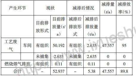 表1 減排前(qian)后企業VOCs排放(fang)量對比(bi)