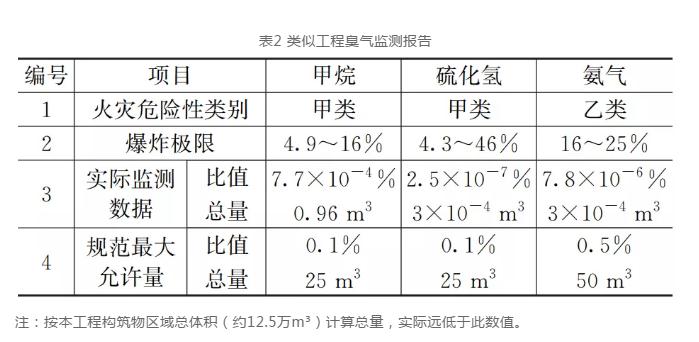 另外,本工程中CH4、H2S和NH3的濃度水平均遠低于《建筑設計防火規范》(GB50016-2014)中規定的“可不按物質危險特性確定生產火災危險性類別的最大允許值”,故可不按照甲/乙類考慮。