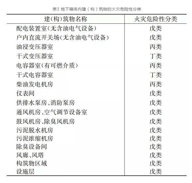 通過對消防設計邊界條件分析可知,地下箱體內建(構)筑物的火災危險性應根據生產中使用或產生的物質性質及其數量等因素分類,并符合表3的規定。