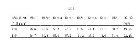 2.1SCR反應器出口NOX測量采用多點測量,每個反應器出口截面采用8點測量,通過同步實時采樣、分時分析,實現在2~3分鐘內完成一次截面NOX含量分布周期分析,如表1NOX分區測量系統某時段參數所示: