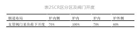 此方案中SCR反應器出口NOX測點數量及布置要與噴氨分區數量形成一定的對應關系,8個出口NOX測點均勻度要控制在20%左右。調節開度如表2所示: