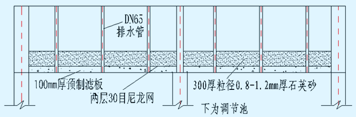 3.1.3 防滲(shen)層上設排(pai)水(shui)層,以接納(na)下滲(shen)的(de)污水(shui)并迅速排(pai)走(zou)以達到好的(de)干(gan)化效果(guo)。其(qi)排(pai)水(shui)層高度通常取 100cm 。其(qi)間用混凝(ning)土支墩(dun)將濾(lv)水(shui)層支撐(cheng)住。
