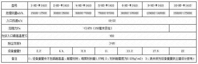 HX-1410旋(xuan)風除塵器(qi)技術參數: