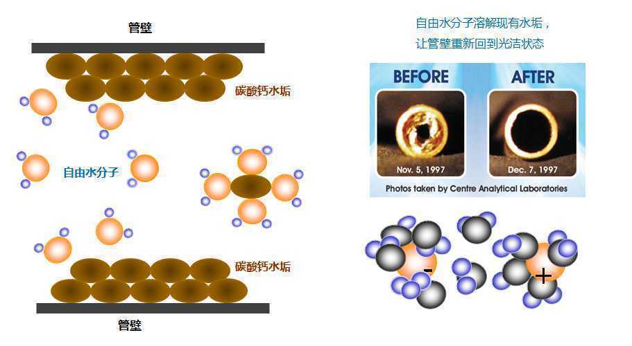 額外的(de)好處: 水(shui)垢離子碰撞結晶(jing),原先離子周圍(wei)的(de)水(shui)分(fen)子也會被釋放出來(lai),增加自由水(shui)分(fen)子含量,水(shui)的(de)溶解(jie)力增強 。