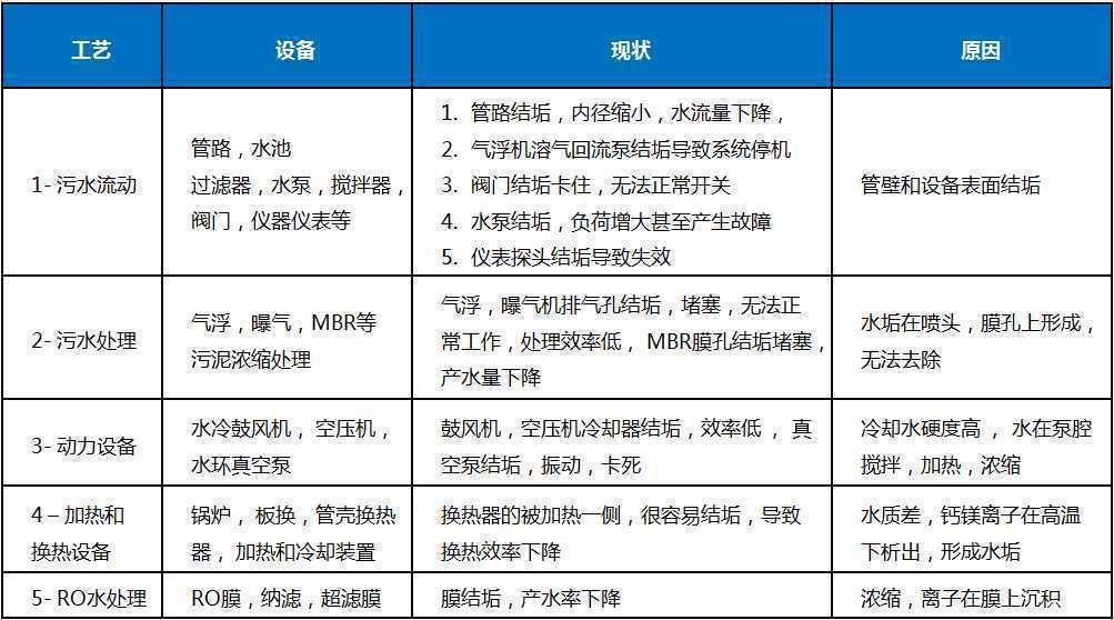 工(gong)業污水水量大,水質復雜,有(you)很(hen)多(duo)種工(gong)藝(yi), 可能結垢(gou)的設備包括(kuo):