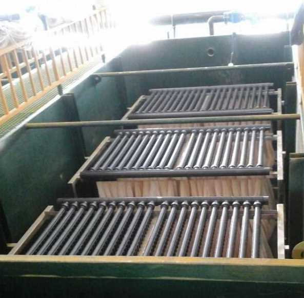 2、剝(bo)離強度高,不脫(tuo)皮,中空纖維(wei)膜的分離層與紡(fang)織管(guan)支撐層結(jie)合(he)緊(jin)密(mi),瞬間剝(bo)離強度可(ke)達700kPa以上(shang),可(ke)以經受(shou)頻繁的反沖(chong)洗運行(xing),不會出現(xian)中空纖維(wei)膜脫(tuo)皮現(xian)象(xiang),系統(tong)運行(xing)穩定。