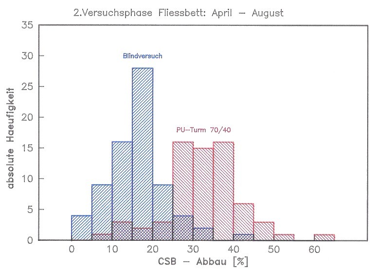 下面的兩張圖顯示的是一家化工廠的污(wu)水通過生物濾池的處理后COD額外(wai)的去(qu)除率以及無LEVAPOR 和(he)使(shi)用(yong)LEVAPOR生物膜(mo)技(ji)術的對(dui)比。從(cong)(cong)中可明顯觀(guan)察(cha)到使(shi)用(yong)LEVAPOR生物膜(mo)技(ji)術后COD去(qu)除率更高,并且從(cong)(cong)去(qu)除率的概(gai)率分布上來看其效(xiao)果更佳。