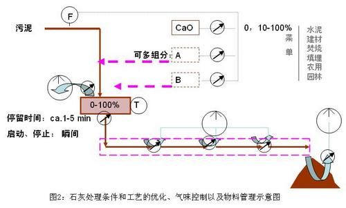 值得說明的是,在很多情況下也可以向污泥中混入多種物料,如當處理污泥后進行填埋時,可在污泥中添加飛灰和少量水泥,達到節省氧化鈣和增加強度的效果。