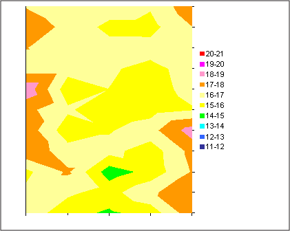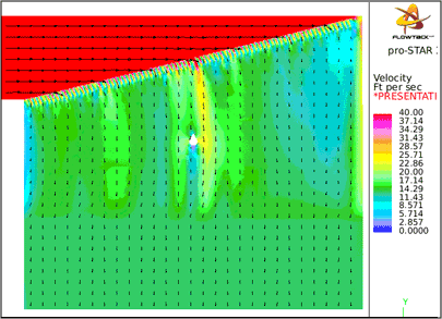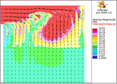 圖 1: 使用標準葉片時SCR速度分配 (CFD模擬結果) 圖 2: 使用GSG時SCR速度分配(CFD模擬結果(guo)) 圖 3: 使用傳統葉片時催化劑表面的速度測量 圖 4: 使用GSG時催化劑表面的速度測量 |