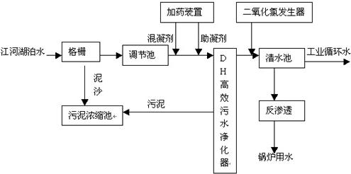 隨著水資源的日益緊張,自來水價格不斷上漲,這給生產性企業特別是用水大戶帶來沉重的負擔。同時變換中的水價也給企業成本控制帶來不確定因素。另一方面,江南地區的大部分企業廠址附近都有河流或湖泊,只是水質較差,無法直接作為工業用水。利用本所設計的DH凈化器作主體設備的工藝流程,可以經濟高效的處理江河湖泊水使其滿足工業用水的要求,對于用水大戶的企業來說是一大福音。