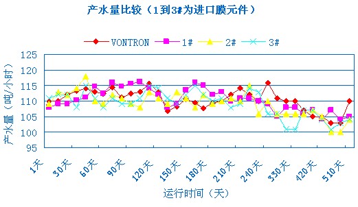 運行3年后VONTRON LP21-8040膜系統(tong)的(de)脫(tuo)鹽率及(ji)產水量的(de)變化(hua)情況: