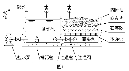 接下來(lai)探討(tao)溶(rong)液(鹽(yan)水)的濃(nong)化(hua)。溶(rong)液的濃(nong)化(hua)相對簡單(dan),可以這樣(yang)做(zuo):先打開連通閥(參見圖(tu)1),然后舀鹽(yan)水池里(li)(li)的稀(xi)鹽(yan)水澆在溶(rong)鹽(yan)池里(li)(li)的固體鹽(yan)上,邊澆邊測(ce)鹽(yan)水的濃(nong)度,直到符合要求為止。
