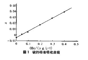 ① 配制質量濃度為0.40μg/L的鈹標準溶液(用1%的硝酸稀釋),并以此為母液由自動進樣器分別稀釋成0、0.05、0.10、0.20、0.30、0.40μg/L的系列標準溶液,依次注入石墨爐測定。