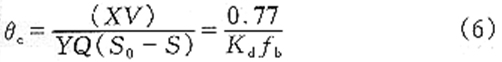 脫氮需要考慮排放污泥中細胞的氮含量。按照細胞合成的碳氮磷的比例為C∶N∶P=106∶16∶1,即污泥中最多包含12.3%的N和2.6%的P。一般在內源呼吸階段,不可生物降解部分僅僅包含7%的N和1%的P,剩余污泥中的其他N、P回到主體溶液中。因此污泥中的含氮量依賴于污泥齡(θc),污泥齡越長,污泥中的含氮量越小。由需要去除的氮量,確定反