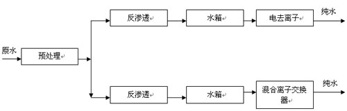 (2)反滲透+混合離子交換(huan)脫(tuo)鹽系統