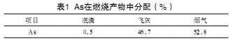 從表1可以看出,As元素主要分布于電除塵器飛灰和煙氣中,由于煤粉爐中飛灰量遠大于底渣量,從而表現出飛灰中的As元素份額遠大于底渣中的份額。