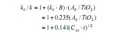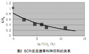 以As/TiO2為橫軸,k0/k為縱軸做砷中毒造成的催化劑活性變化圖 (見圖4)。
