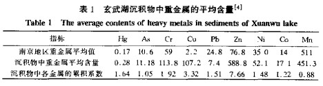 表1玄武湖沉積物中重金屬的平均含量