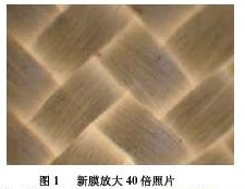 實驗(yan)采用(yong)的(de)膜(mo)(mo)材料為(wei)PET(聚對苯二甲(jia)酸(suan)乙二醇酯)細絲材料制成的(de)編織管(guan),管(guan)外徑4mm,壁厚0.4mm。實驗(yan)采用(yong)自制簾式膜(mo)(mo)組件(jian),膜(mo)(mo)組件(jian)高20cm,有效面(mian)積(ji)為(wei)0.04m2。圖1 是無污(wu)染(ran)新膜(mo)(mo)片顯(xian)微鏡下放大40倍(bei)照(zhao)片。