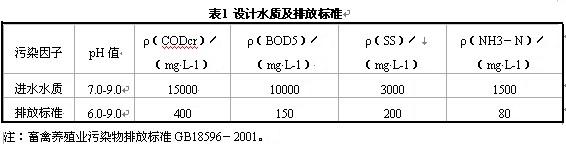 廣州(zhou)某規(gui)模(mo)化養豬場的(de)污水量為(wei) 500 m3/d,設計水質及排(pai)放標準見表1。