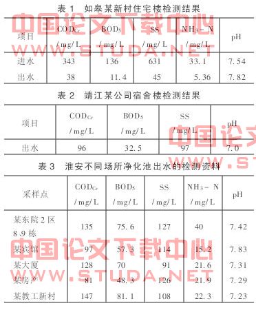 表1~表3的數據表明,生活污水凈化沼氣池出水應屬基本或接近達到《污水綜合排放標準》(GB8978—1996)中的二級排放標準要求。