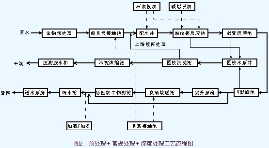 2) 在水廠處理工藝的選擇前,首先要充分收集和分析水廠水源的水質情況,要掌握長期的水源水質,分析水質的變化趨勢,確定水源的水質分類,在這基礎上才能最終確定水廠的處理工藝。
